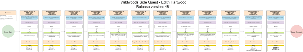 Below is an example of the final quest flow chart used to develop user flow from a high level and a reference document for QA hand off.